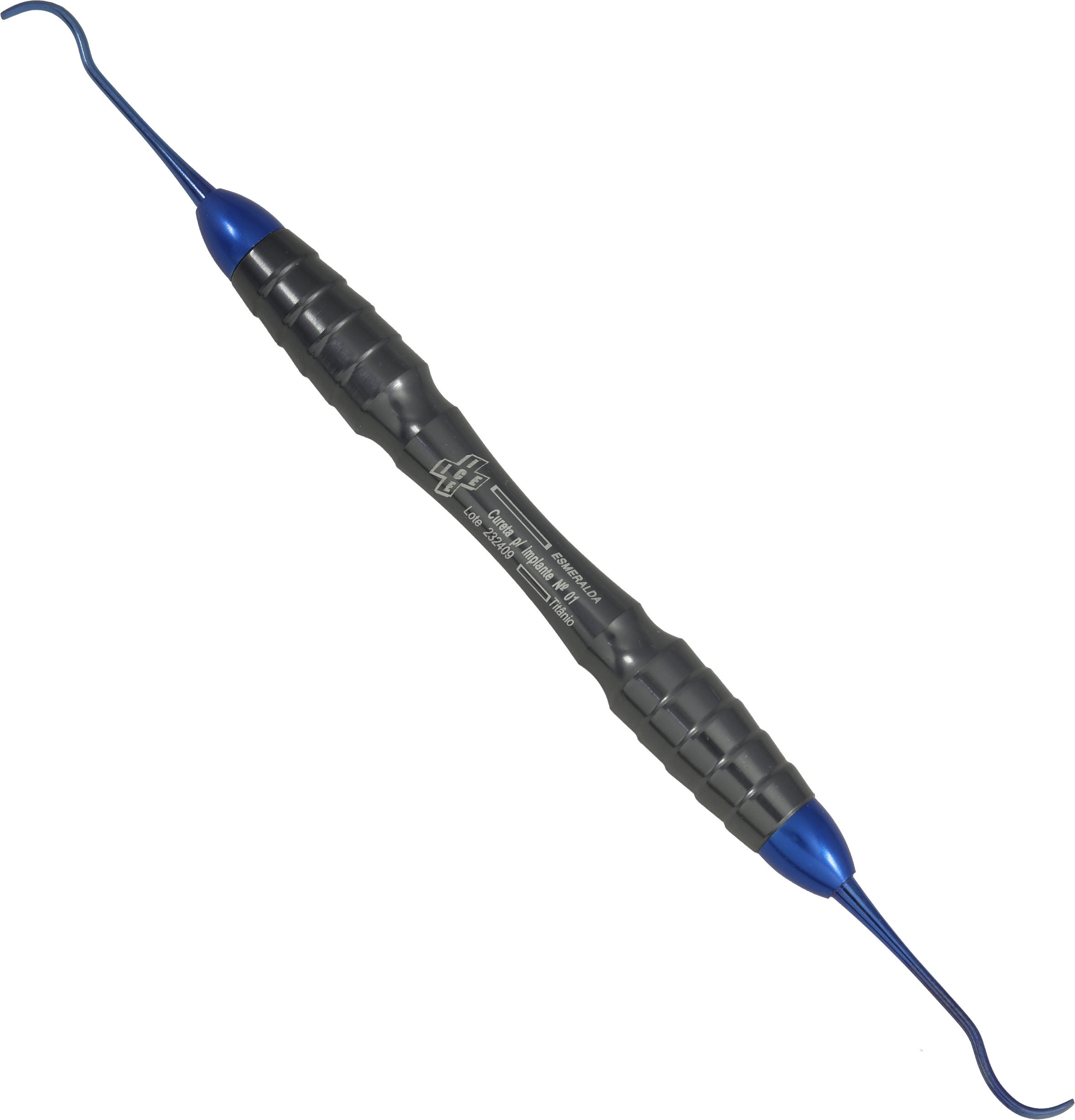 Precisão em Áreas Difíceis de Acessar: O design compacto e curvado da cureta nº 01 permite ao profissional acessar e limpar áreas ao redor do implante que podem ser difíceis de alcançar com instrumentos maiores ou mais rígidos.
