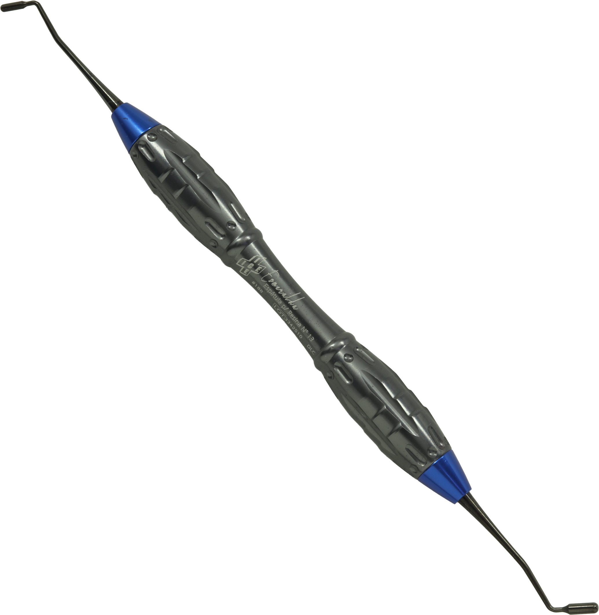 Ponta ativa dupla: A espátula nº 13 possui duas extremidades ativas com formatos distintos para maior versatilidade. Geralmente, uma ponta é em forma de lâmina reta ou levemente angulada, e a outra é em forma de esfera ou ponta fina. A lâmina é ótima para espalhar e contornar áreas maiores, enquanto a ponta fina é ideal para a escultura de detalhes e sulcos oclusais.